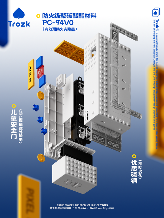 Regular price From $63.99Regular priceUnit price / perSale price From $63.99TROZK Turlock building block socket gallium nitride strip 65W fast full asana typeC can be used for trendy play tables