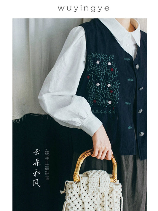 Wu Yingye, clouds and wind, bamboo hand-woven bag, original handmade forest girl literary tassel, cotton thread mobile phone bag