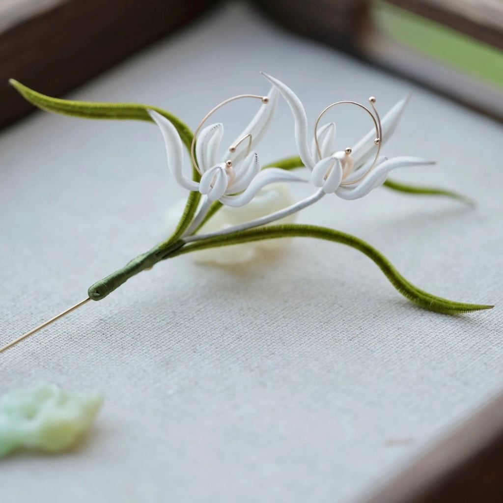 Secluded Orchid Velvet Flower Brooch | Elegant Orchid Brooch | Handmade Silk Velvet Flower Brooch