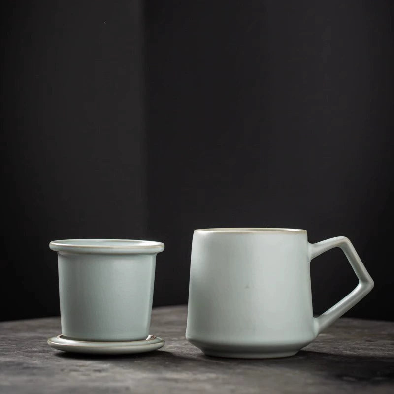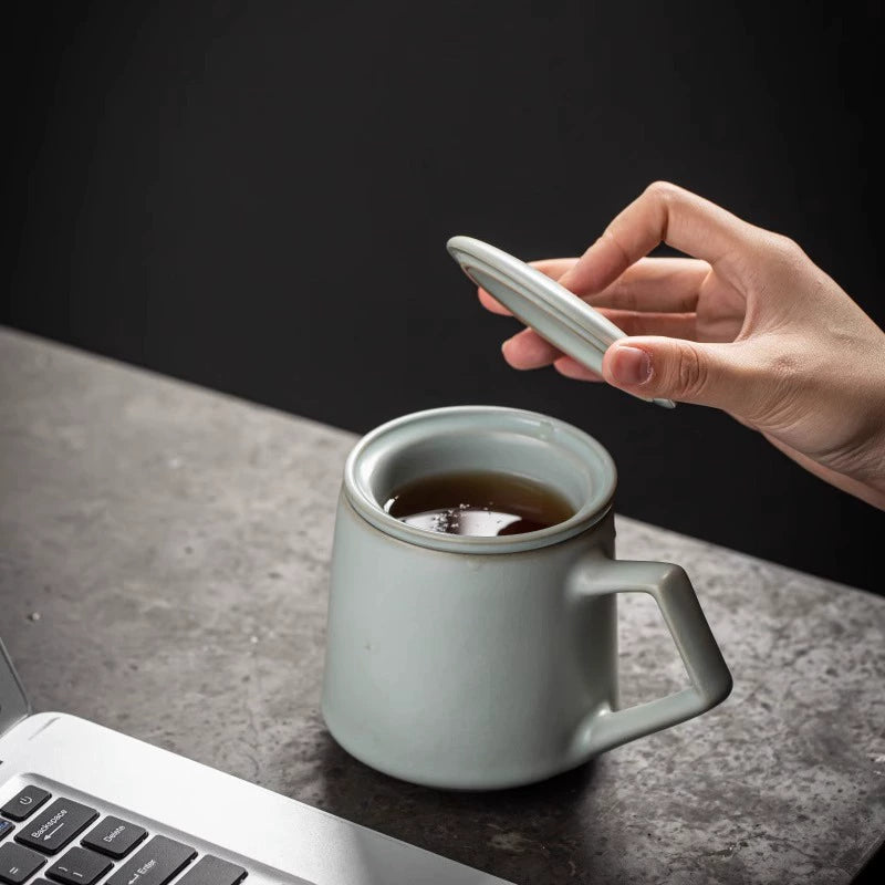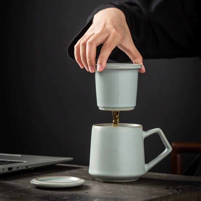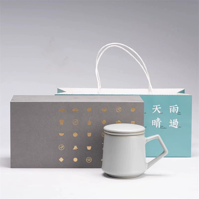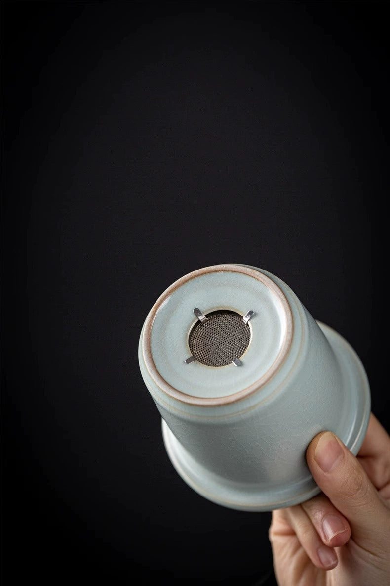 Shouzang Rushan Ming mug office cup cup tea leak three-piece set lid cup Ru kiln opening piece Chinese