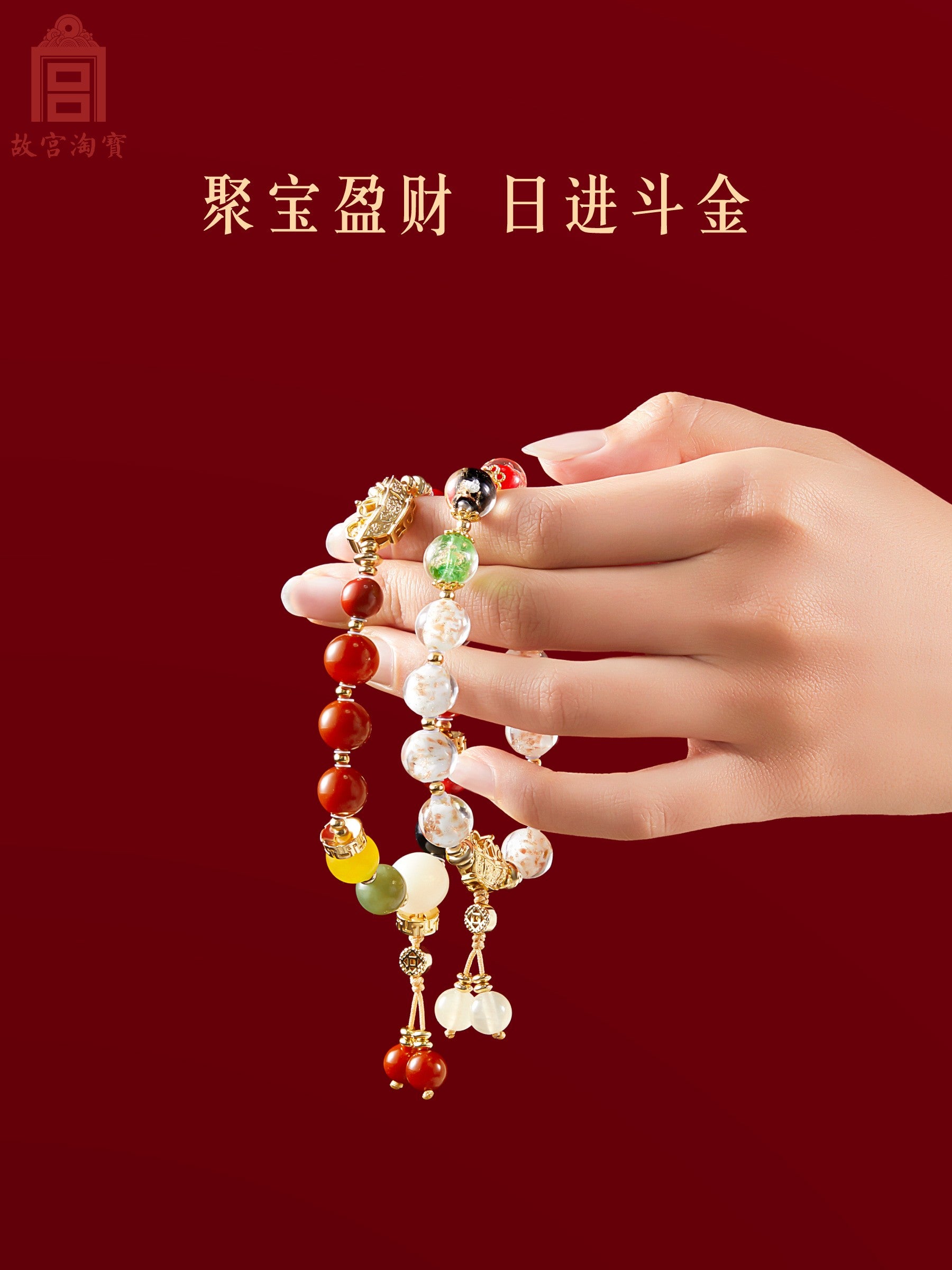 The Forbidden City | Five Fortune Gods Bracelet with South Red Agate and Colored Glaze is a blend of traditional auspicious elements and modern aesthetics. With the theme of the Five Fortune Gods symbolizing wealth and good luck, the combination of South Red Agate and colored glaze not only looks elegant but also adds a touch of mystery. This bracelet is an ideal gift for the year of one's zodiac or special birthdays and a collectible for cultural enthusiasts.