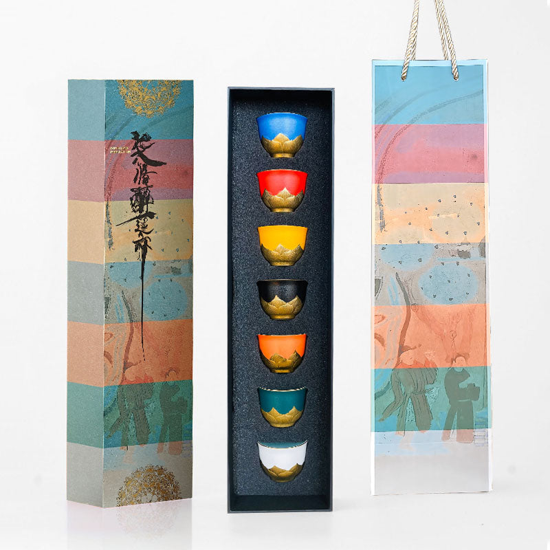 The Dunhuang Cultural Seven Emotions Teacup and Tea Set Gift Box is a combination of traditional Dunhuang art and modern practicality. This gift box is designed for museum enthusiasts, as a birthday gift for men, or as a practical gift, with its unique design and profound cultural connotations, making it an excellent choice for both collection and use.