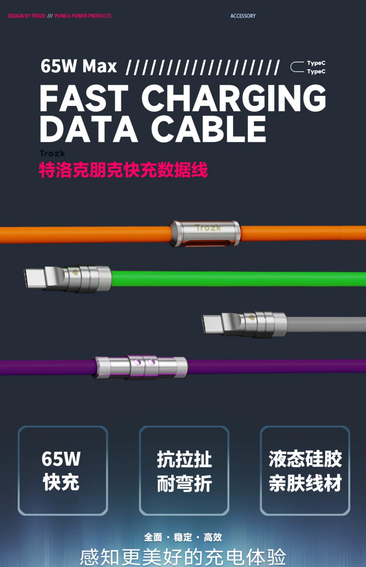 Trozk Tlock快充数据线65W安全稳定高效Type-c接口多功能安卓充电