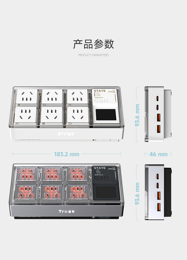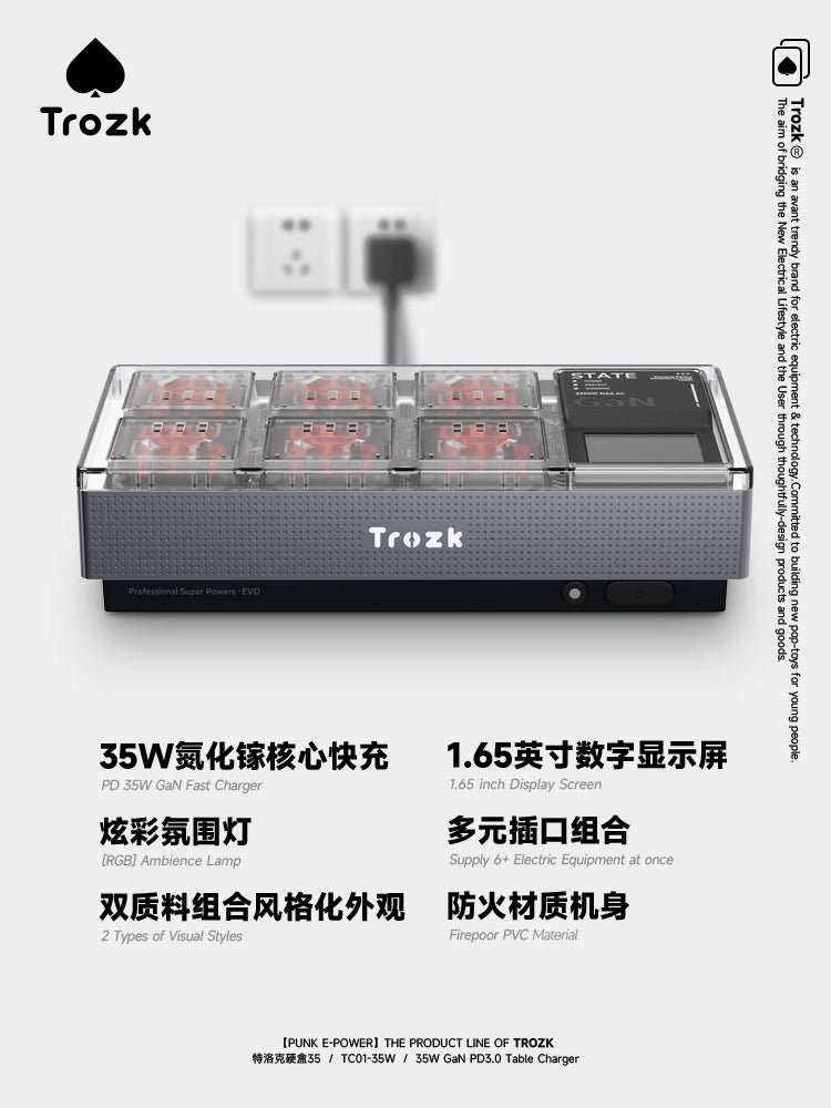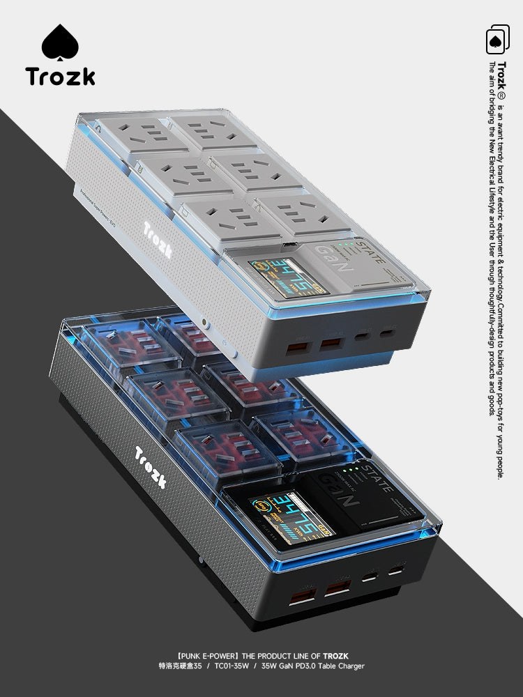 Trozk Hard Case 35 Gaming Socket RGB Ambient Light Socket Row Punk Power Multi-function Fast Charging Wiring
