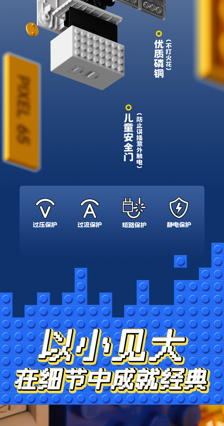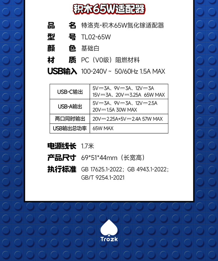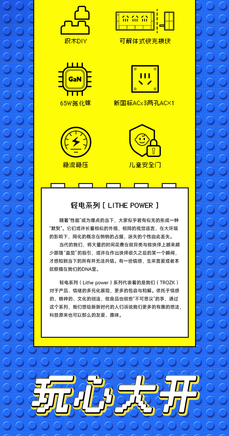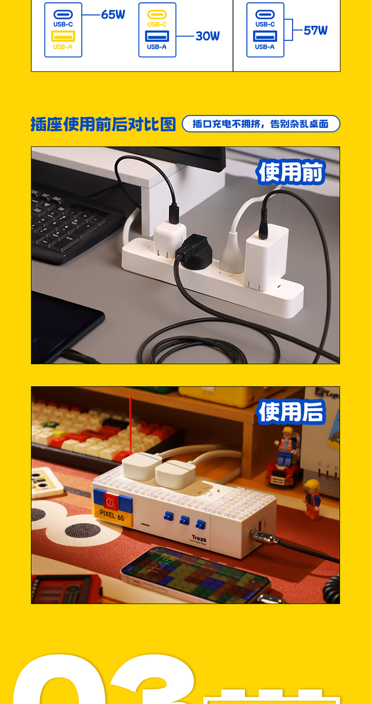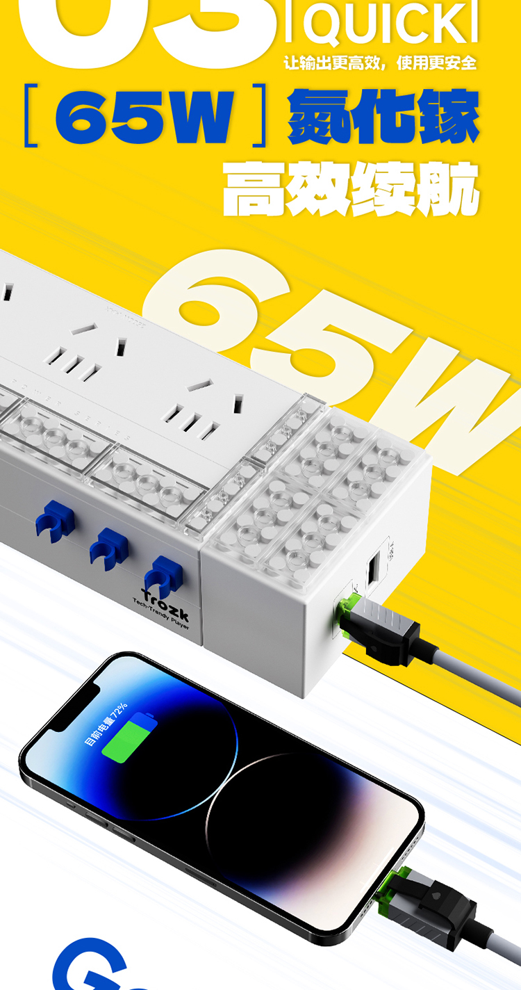TROZK Turlock building block socket gallium nitride strip 65W fast full asana typeC can be used for trendy play tables