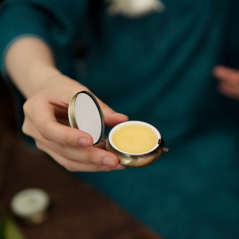 Step 01:Scoop an appropriate amount of balm with a spoon or fingers and apply to wrists, behind the ears, neck and other areas.